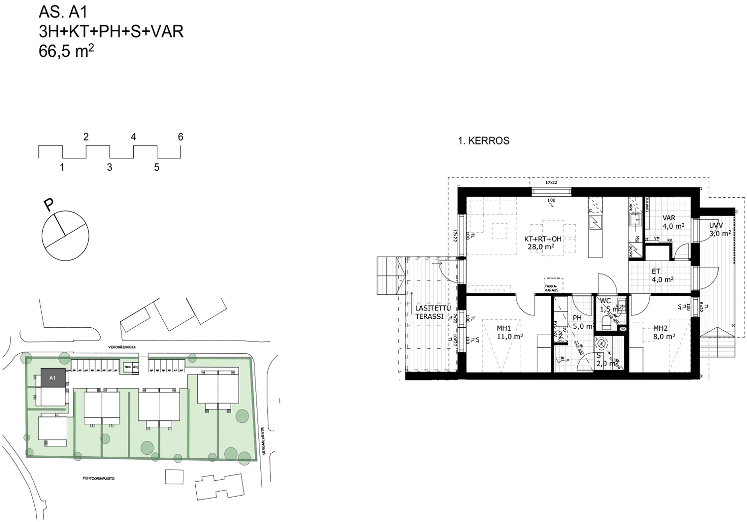 Asuinpinta-ala: 66,5