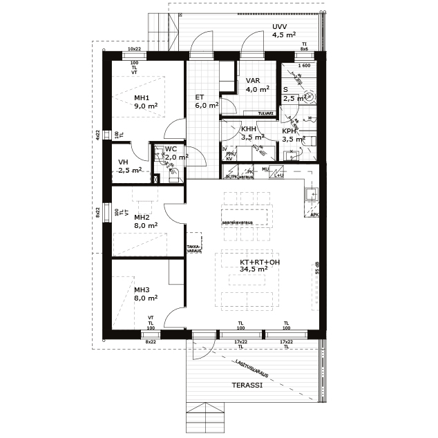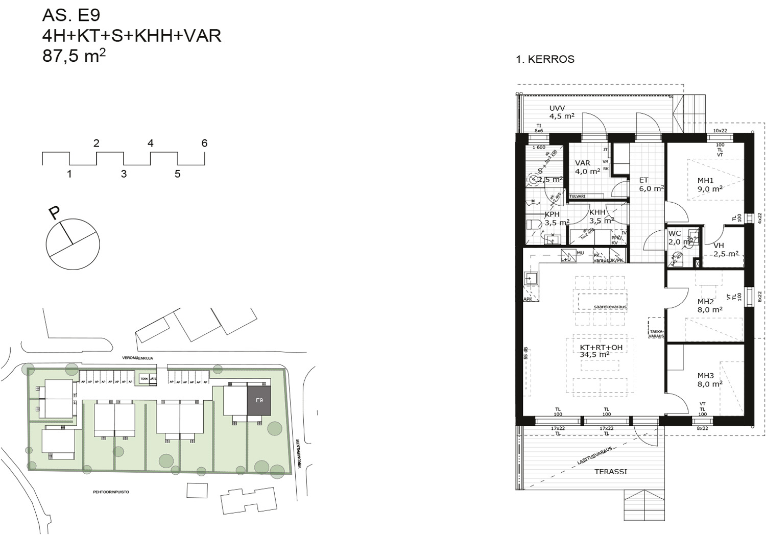 Asuinpinta-ala: 87,5
