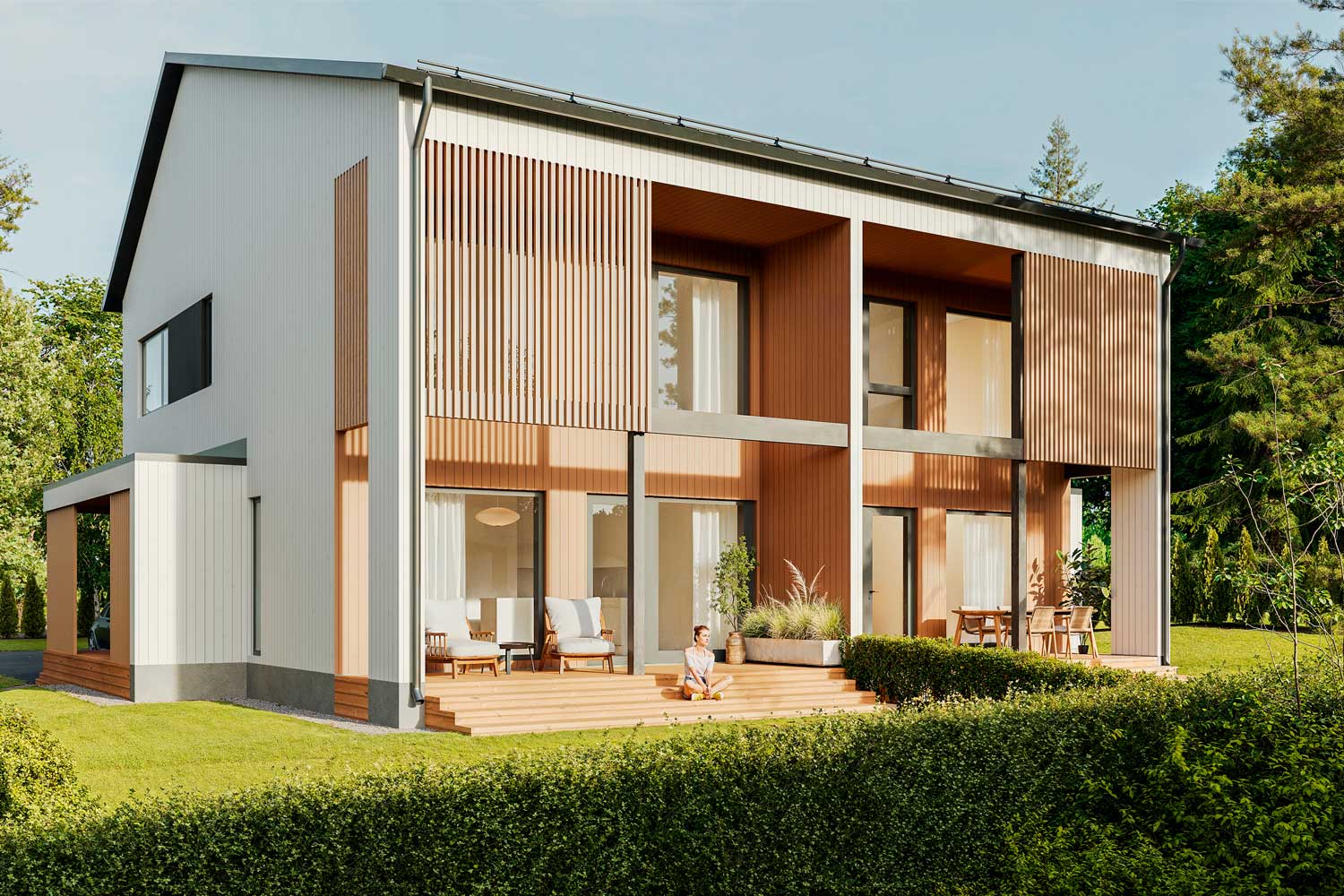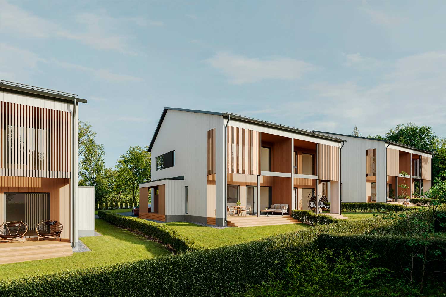 The new development consists of six two-story semi-detached homes, built from northern wood that brings a natural feel and timeless quality. Spacious layouts and durable, high-quality materials ensure comfortable living.