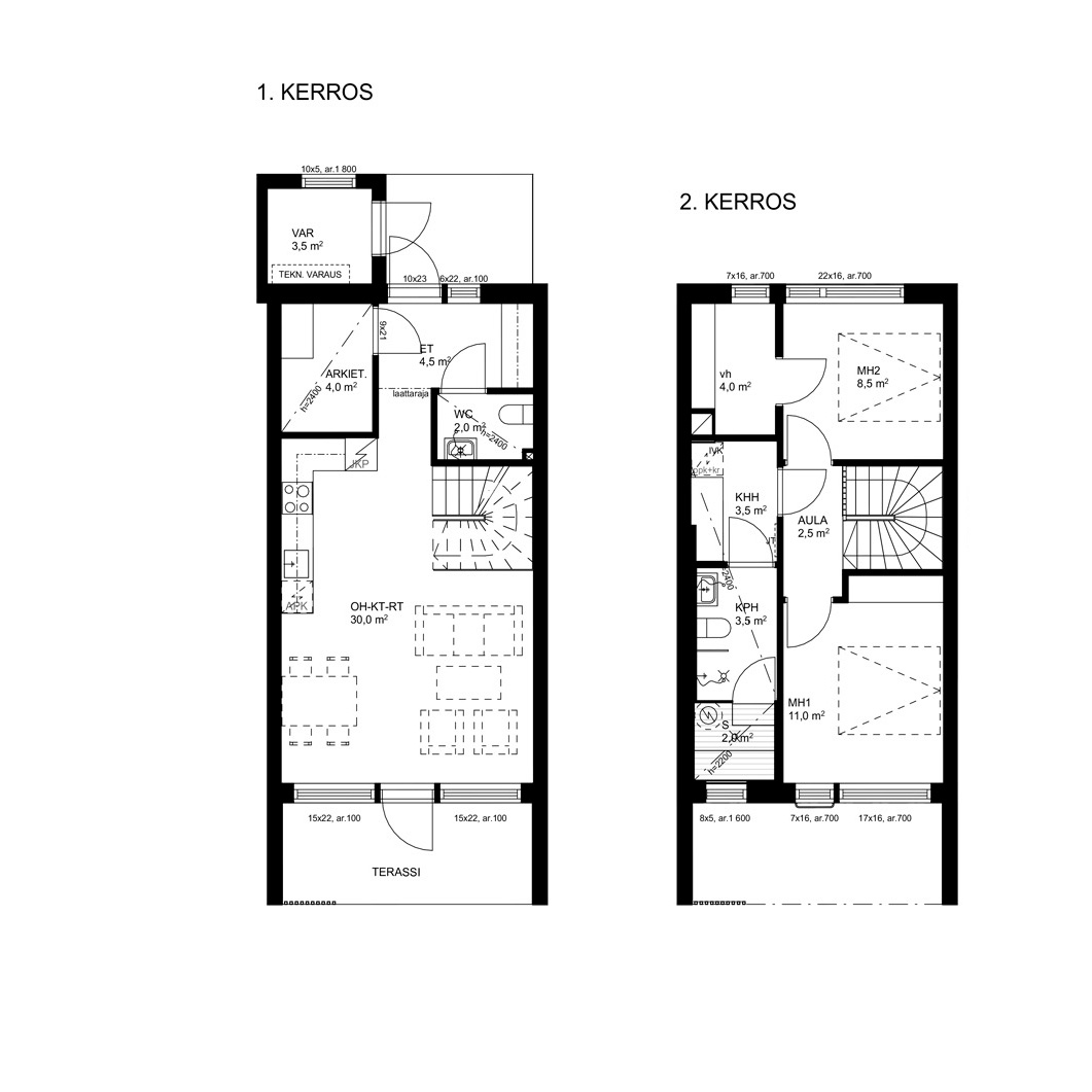 Size 3 rooms + kitchen + sauna + utility room + storage