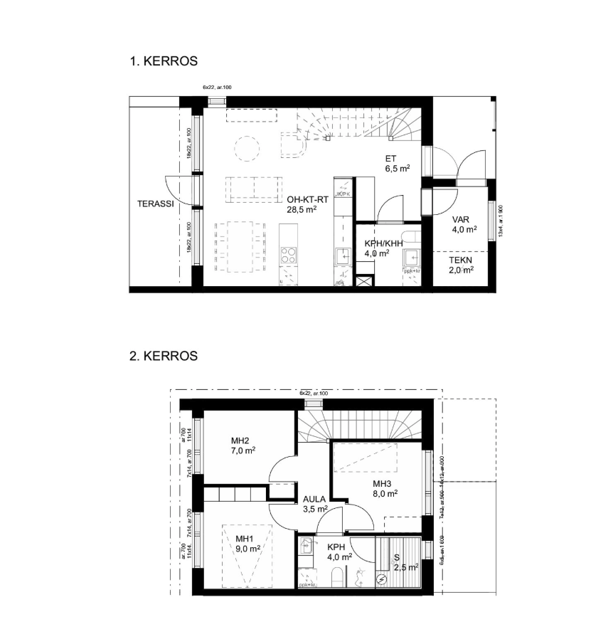 Size 4 rooms + kitchen + utility room + sauna + storage