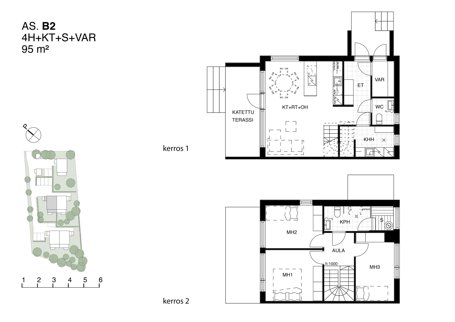 Size 4 rooms + kitchen + sauna + strorage