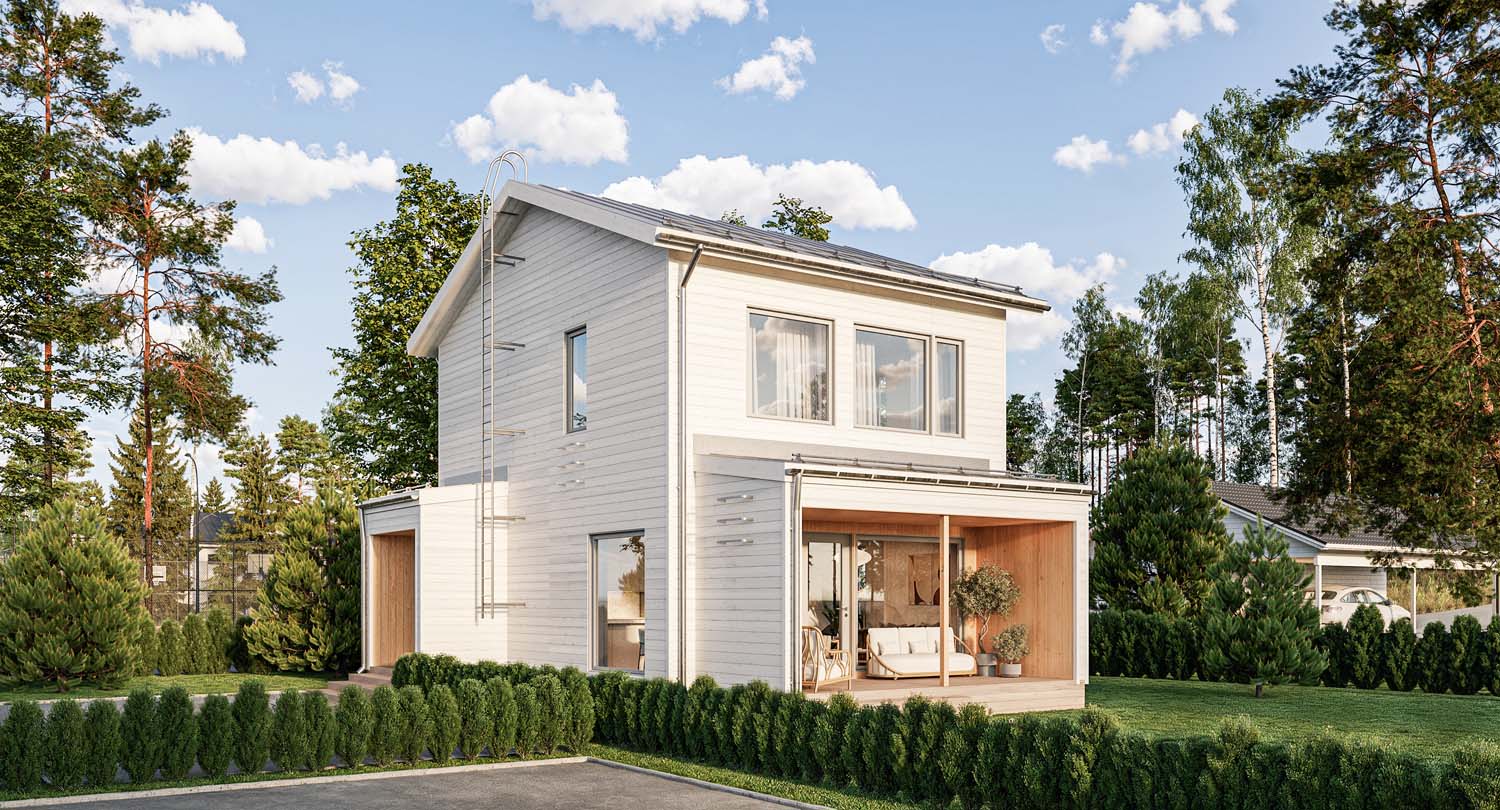 Espoo Lintulehto consists of four two-story semi-detached homes and one two-story detached home. The design of these homes emphasizes durable and high-quality choices – such as solar panel readiness, parquet floors, frameless windows, and integrated dishwashers.