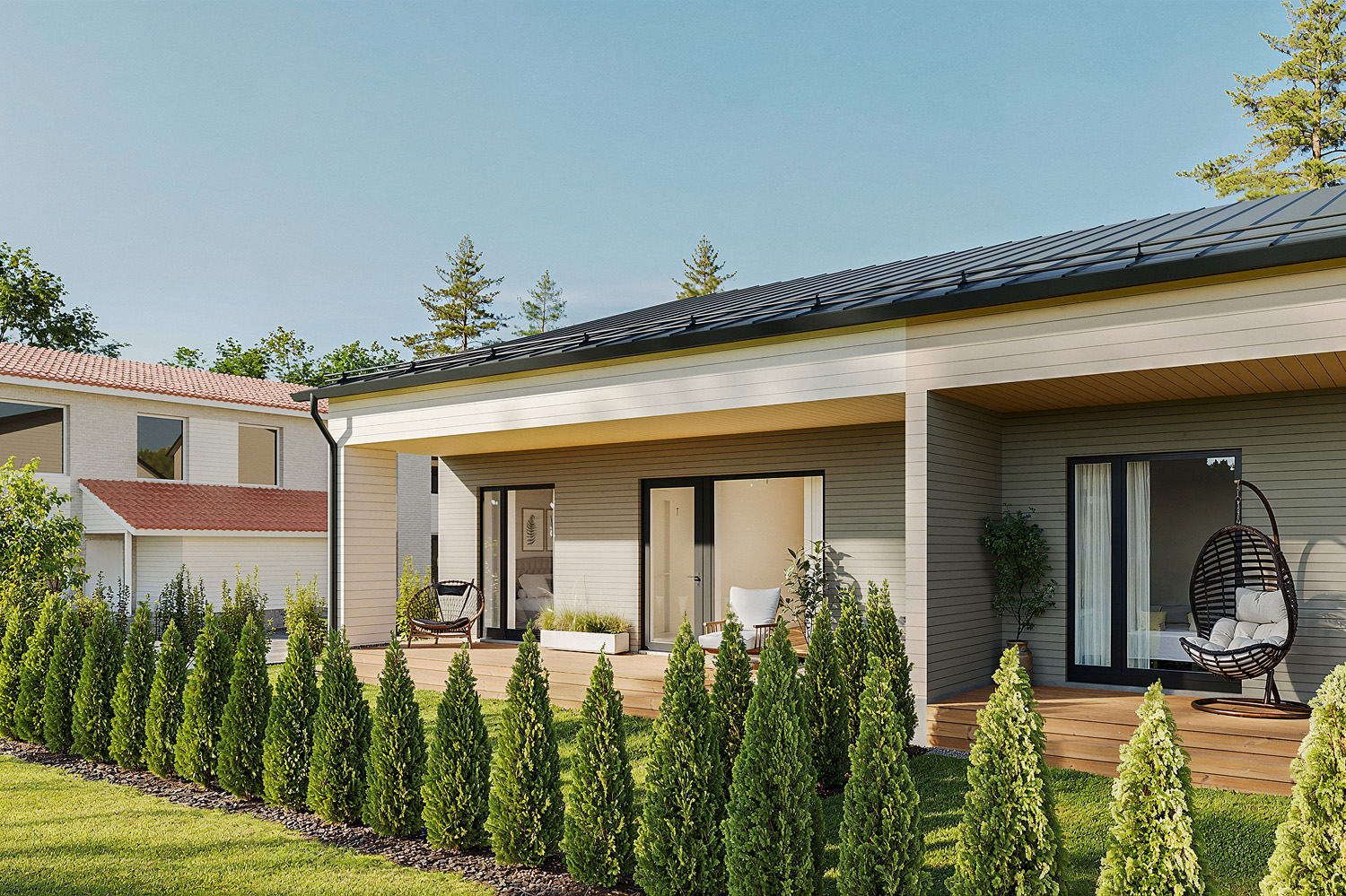 This geothermal home features bright rooms, a covered terrace, a separate storage unit, and high-quality material choices that make everyday living smooth and pleasant. The apartment’s colors, surface materials, and fixed furnishings can be chosen according to the buyer’s wishes up to a certain stage of construction.