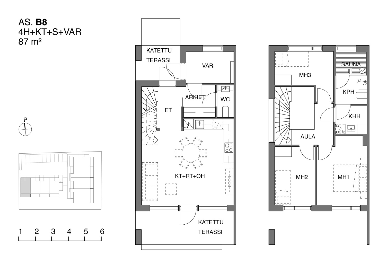 Size 4 rooms + kitchen + utility room + sauna + storage