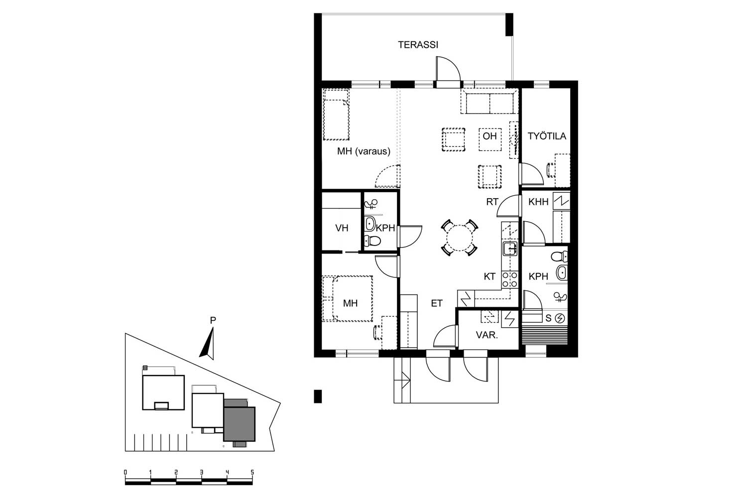 Size 3 rooms + study + kitchen + utility room + sauna + storage