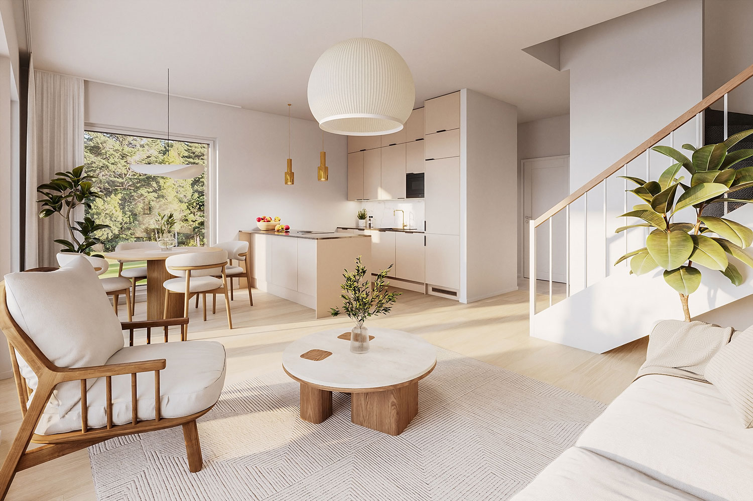 The geothermal homes of Espoo Lintulehto have been designed with timeless and sustainable choices. Located in the cozy district of Kurttila, these two-story homes make it easy to feel at home and find balance between activity and relaxation.