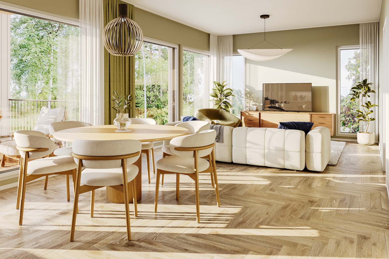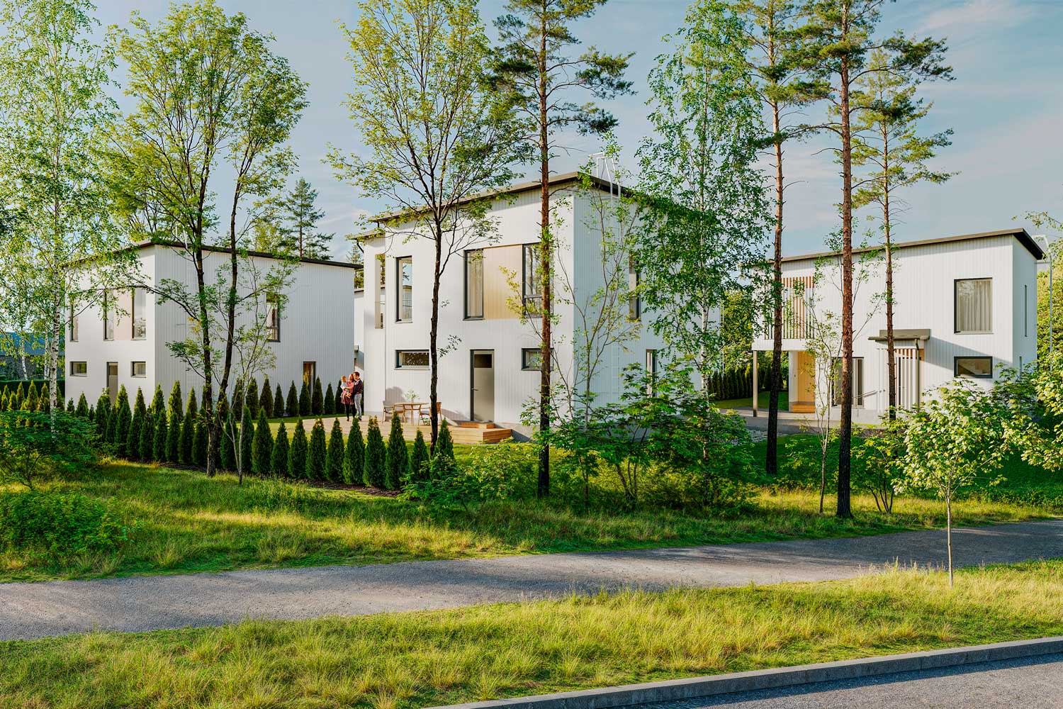 SOLD OUT – The apartments for sale in Espoo’s Hyljelahti are being built in a green and peaceful location, on a gently sloping plot bordering a park on Hyljelahdentie. The new development will include two row houses built from northern wood, both single- and two-story. Each row house will have three geothermal-heated apartments. Just a few steps from your front door, you can enjoy local services, the magnificent outdoor area of Rullavuori, or the seaside cafés along Espoo’s coastal trail!