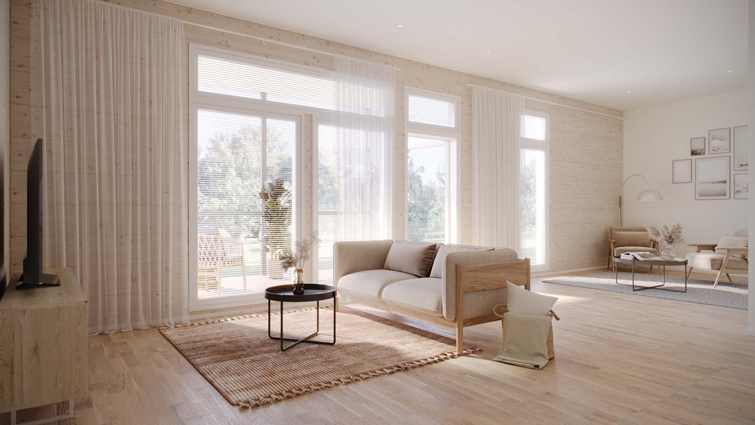 SOLD OUT – The low-rise residential district of East Pakila in northern Helsinki offers a peaceful living environment, with local services within walking distance and excellent transport connections throughout the Helsinki metropolitan area. A beautiful row of oak trees marks the plot where three relaxing homes are being built from northern spruce logs. In Helsingin Heinäsirkka, large window surfaces bring natural light into the modern apartments, where ceiling heights rise to about three meters. The log walls ensure healthy indoor air, while ecological geothermal heating keeps energy costs under control. The skillfully designed 95 m² homes, with two or three bedrooms, are estimated to be completed in August 2022.