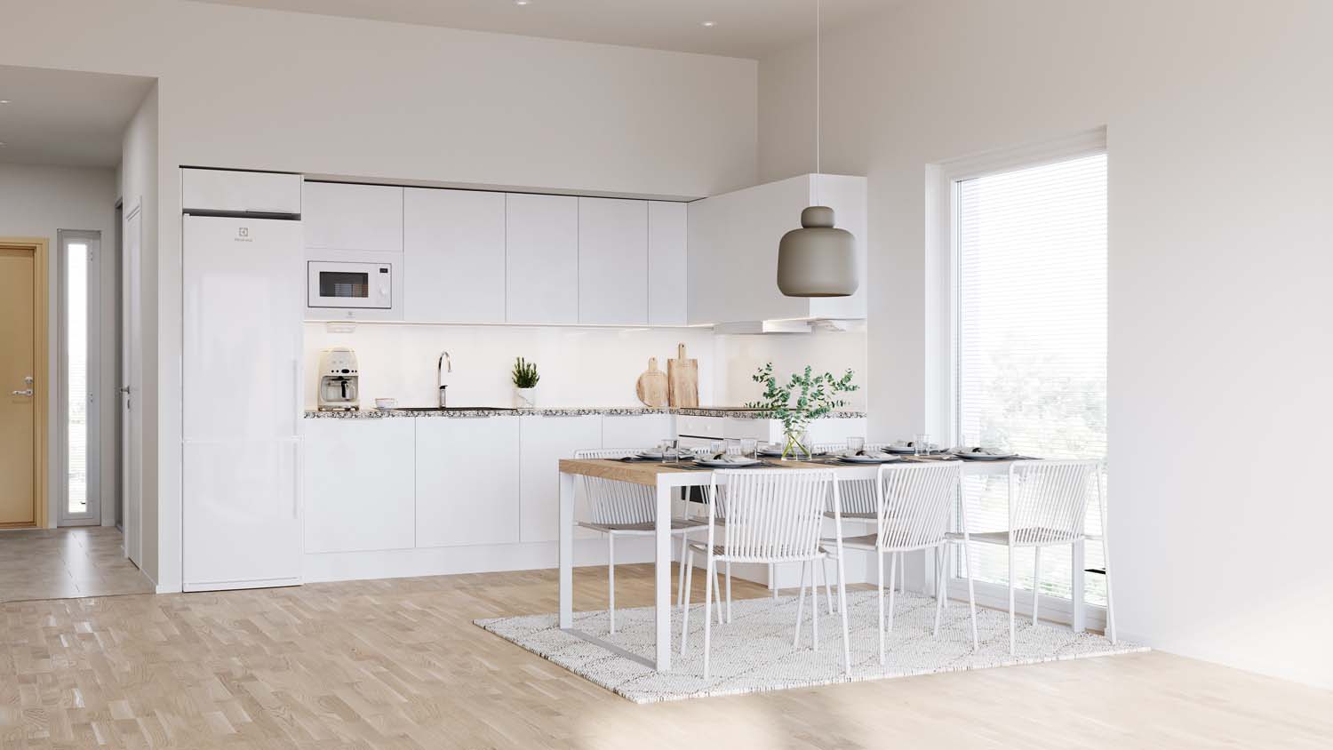 SOLD OUT – The low-rise residential district of Paloheinä in northern Helsinki, bordering Central Park, offers a peaceful living environment, with local services within walking distance and excellent transport connections throughout the Helsinki metropolitan area. On Kytöniityntie in Paloheinä, three bright single-level row house apartments are being built, all heated ecologically with geothermal energy. The skillfully designed homes — 89.5 m² with three bedrooms and 75.5 m² with two bedrooms — feature large windows that bring abundant natural light into the spacious interiors, where the ceiling height rises to about three meters.