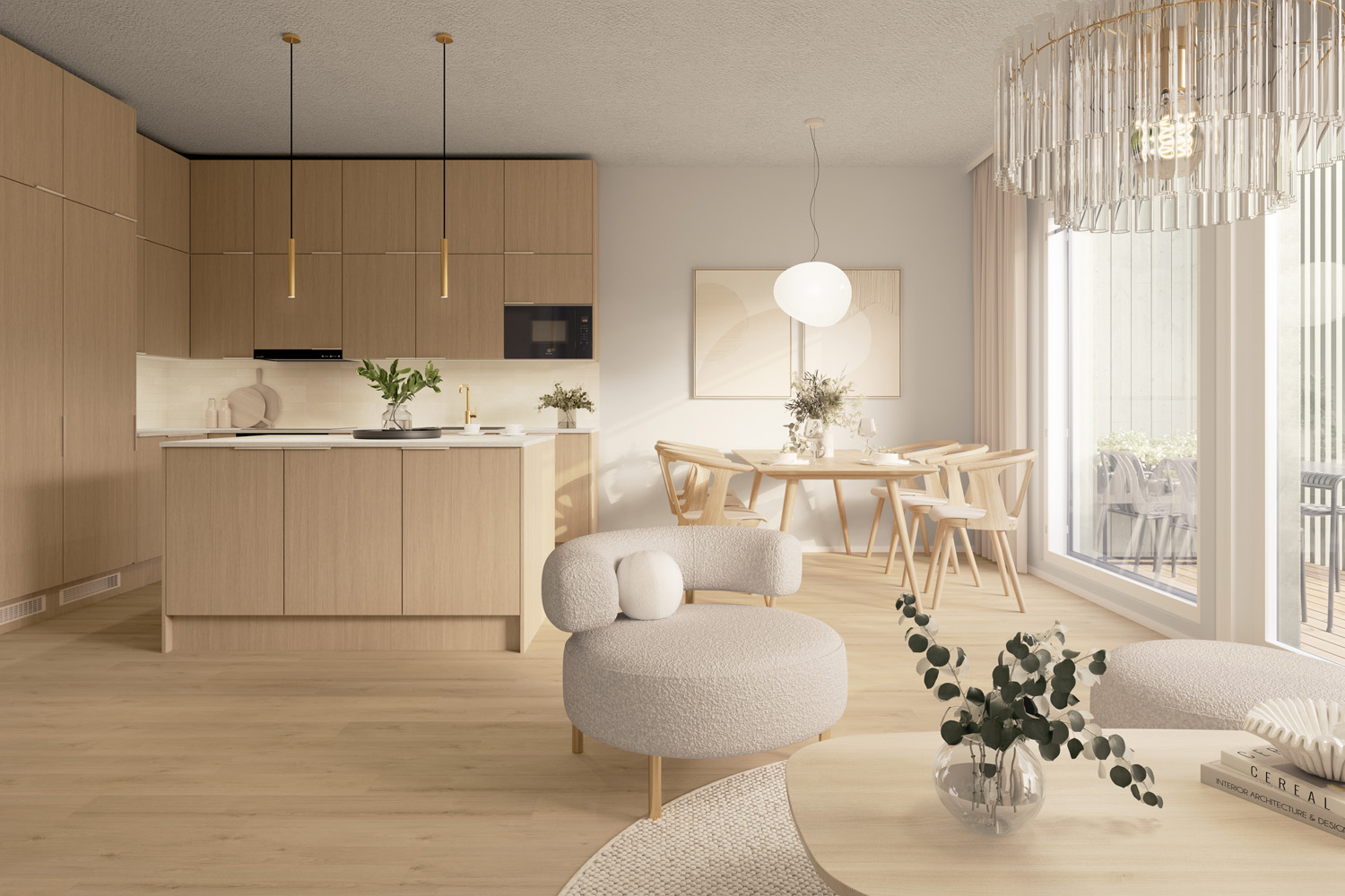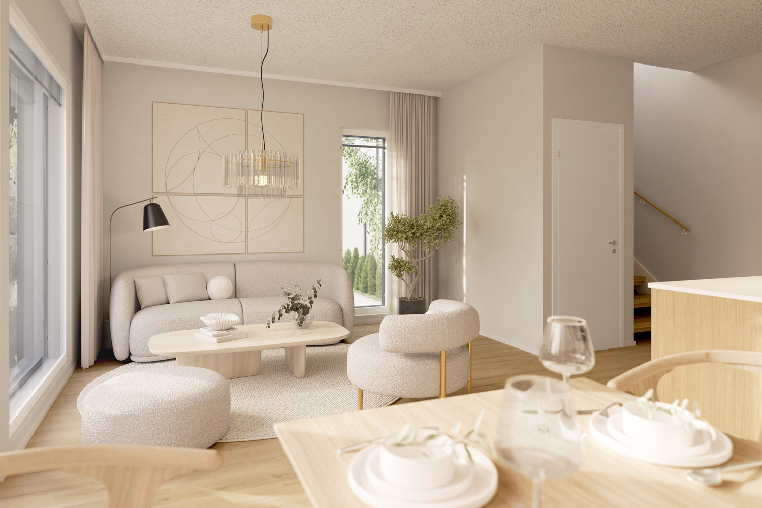 The geothermal homes of Helsinki Tammimetsä have been designed with timeless and sustainable choices. Located in Kuninkaantammi, the two-story homes offer an excellent setting for both relaxation and an active lifestyle.