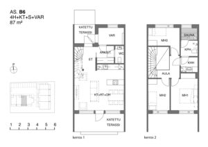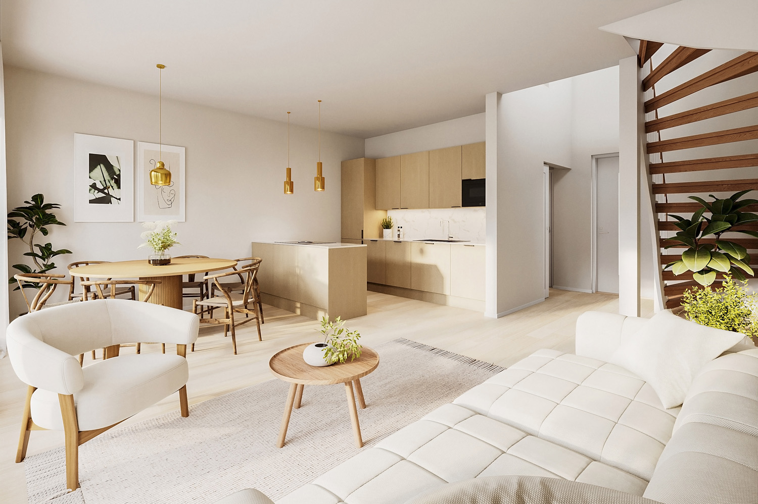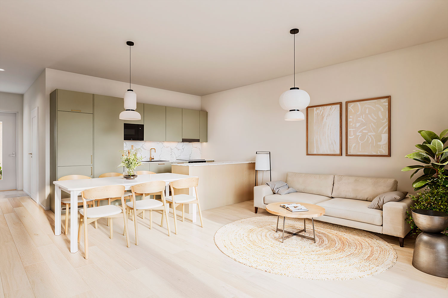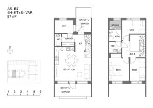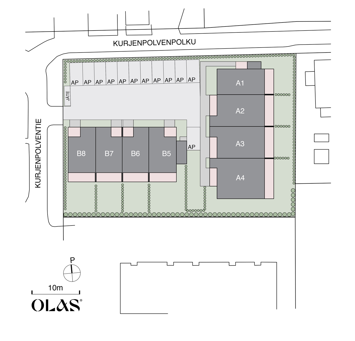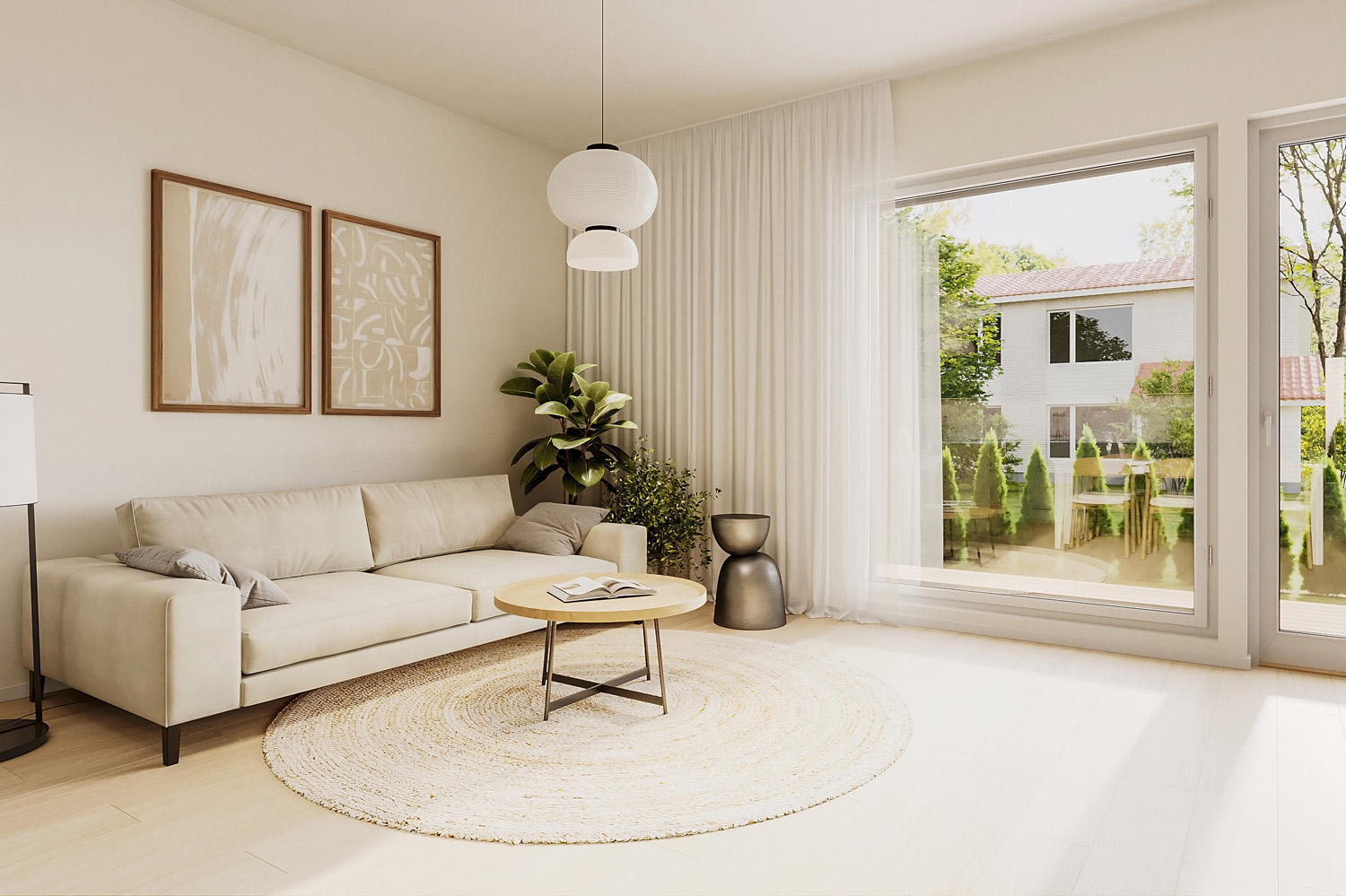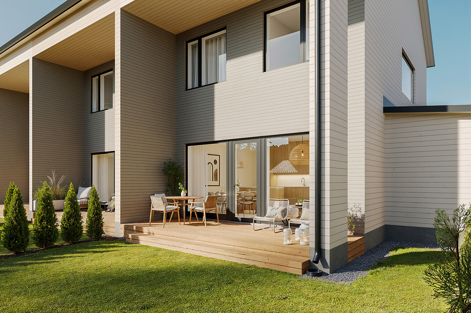 The apartments for sale in Vantaan Pajulintu are located in the low-rise residential area of Viertola, where the neighborhood’s green charm meets the conveniences of easy everyday living. This new development consists of eight one- and two-story row houses built from northern wood. In Pajulintu, you can unwind on the trails of Tikkurila Central Park, at the Tikkurila Sports Park, or enjoy a quiet moment in your own yard – surrounded by the tranquility of the neighborhood. The geothermal homes feature bright rooms, a covered terrace, a separate storage space, and high-quality materials that make daily life smooth and pleasant. The colors, surface materials, and fixed furnishings of each home are selected according to the resident’s preferences.