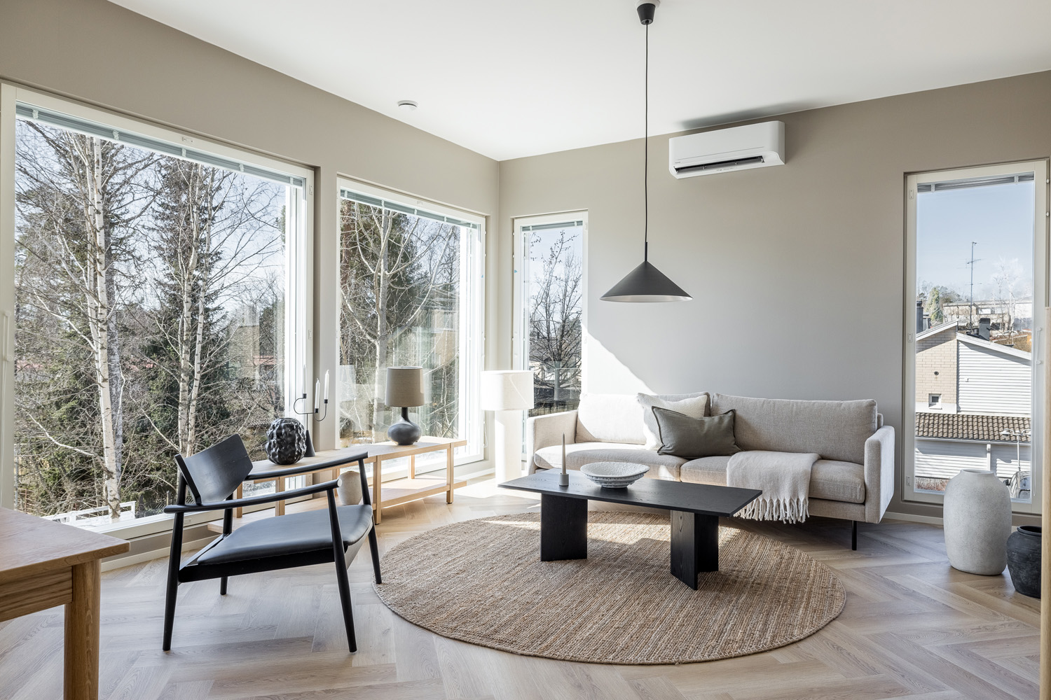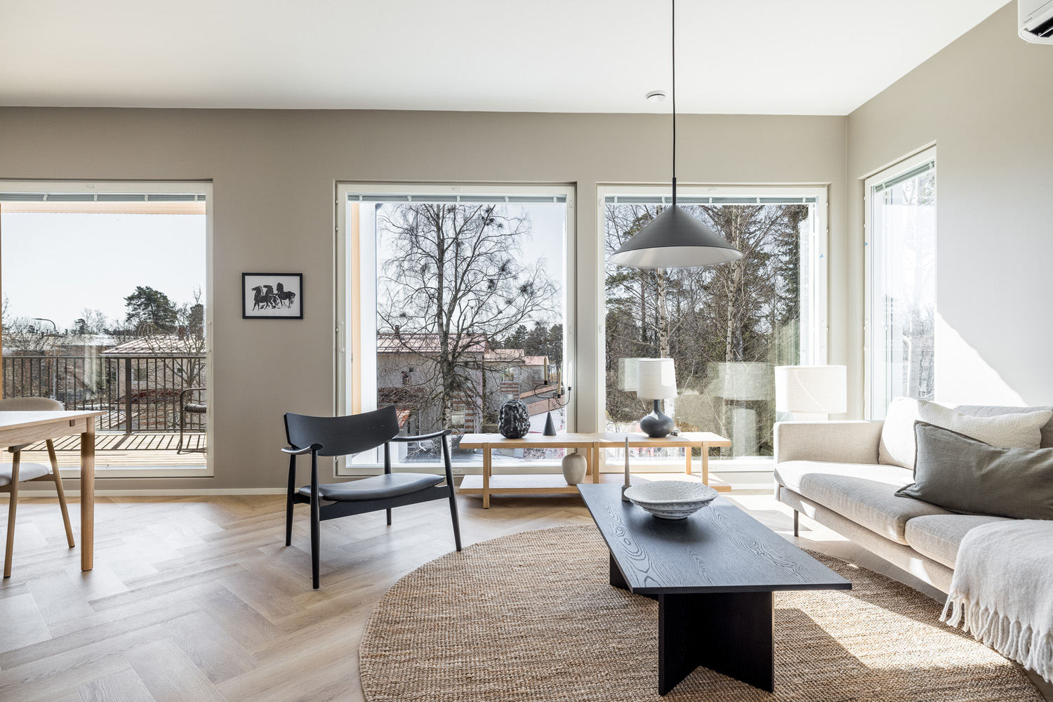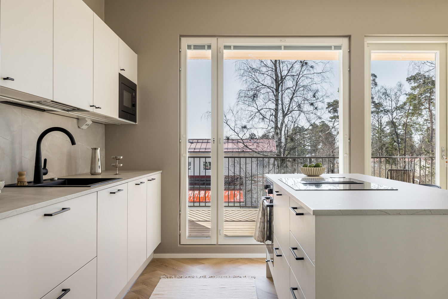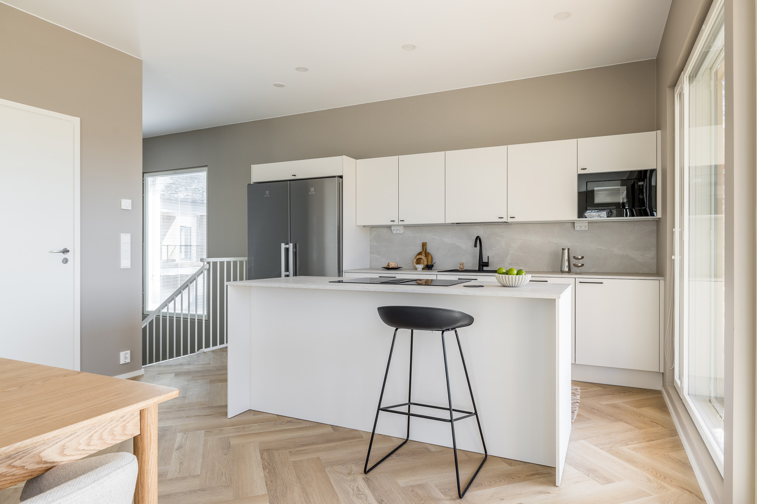 Merihaukan kotien suunnittelussa on tehty ajattomia ja kestäviä valintoja. Jokaisesta asunnosta tulee asukkaidensa näköinen koti korkeatasoisen väri-, pintamateriaali – ja kiintokalustevalikoiman avulla.