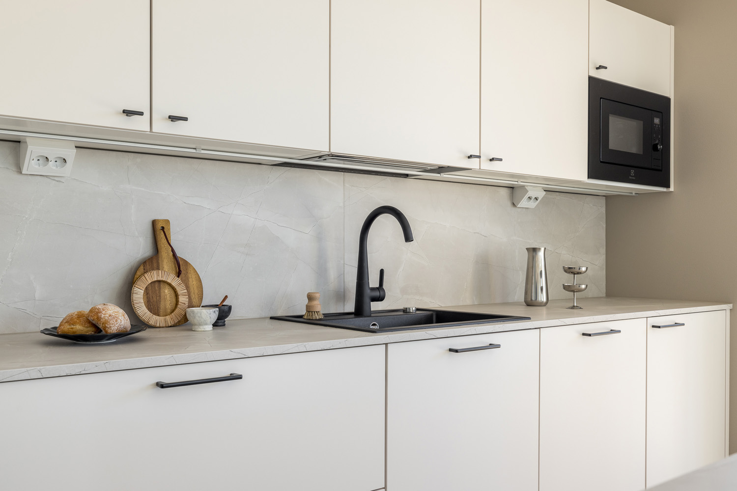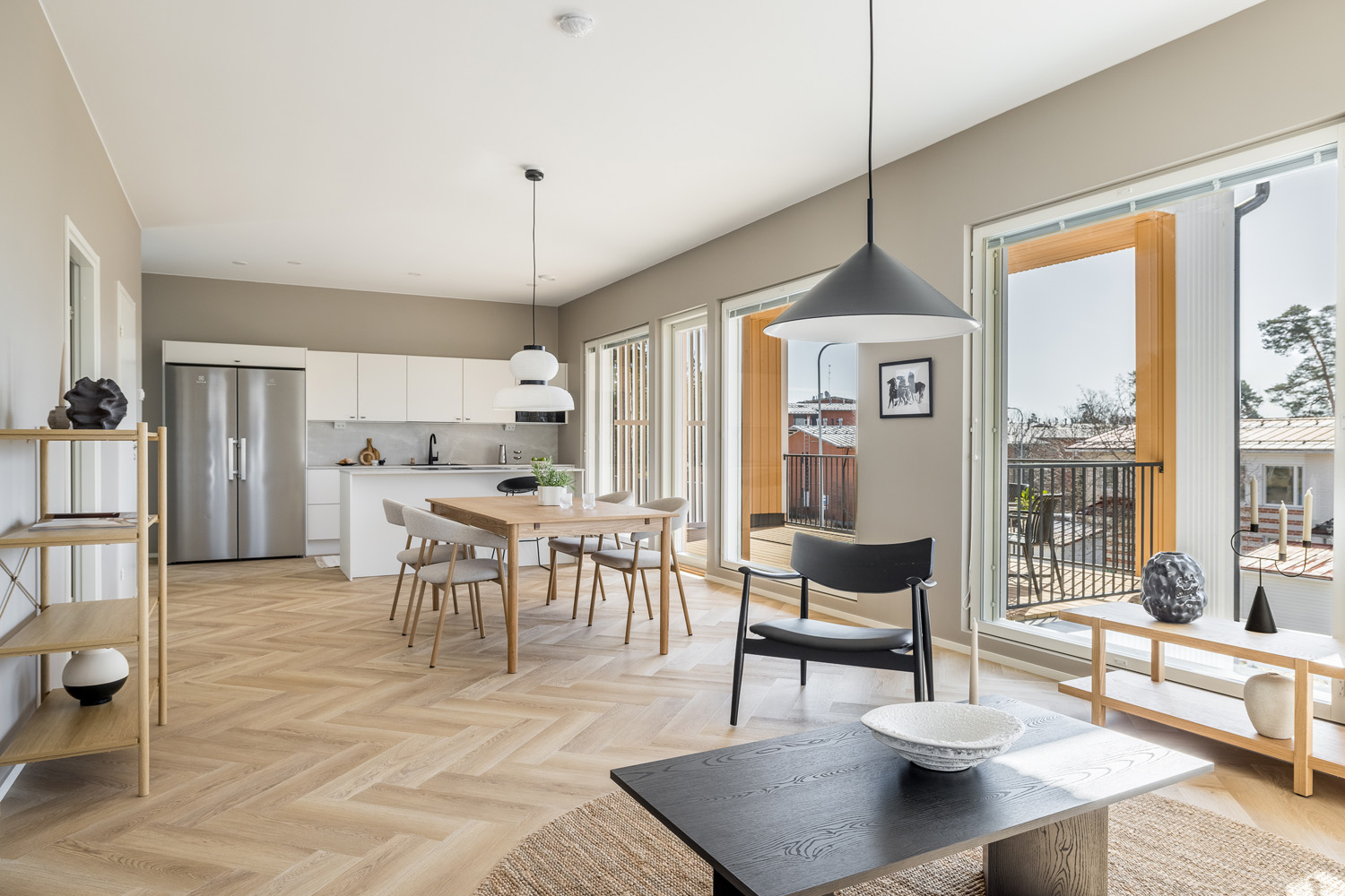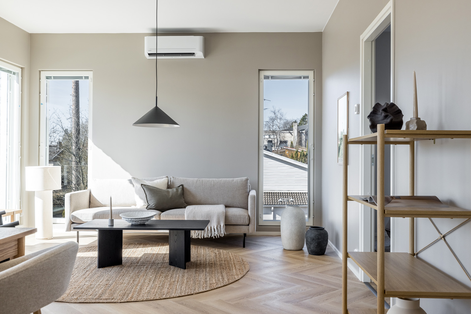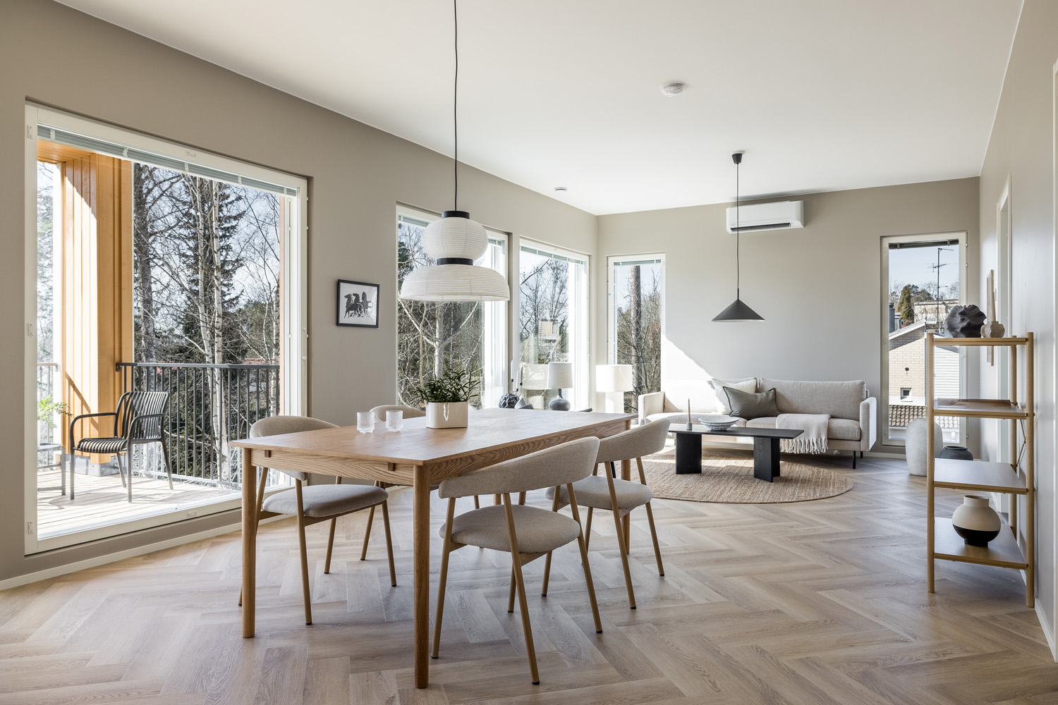 Merihaukan kotien suunnittelussa on tehty ajattomia ja kestäviä valintoja. Jokaisesta asunnosta tulee asukkaidensa näköinen koti korkeatasoisen väri-, pintamateriaali – ja kiintokalustevalikoiman avulla.