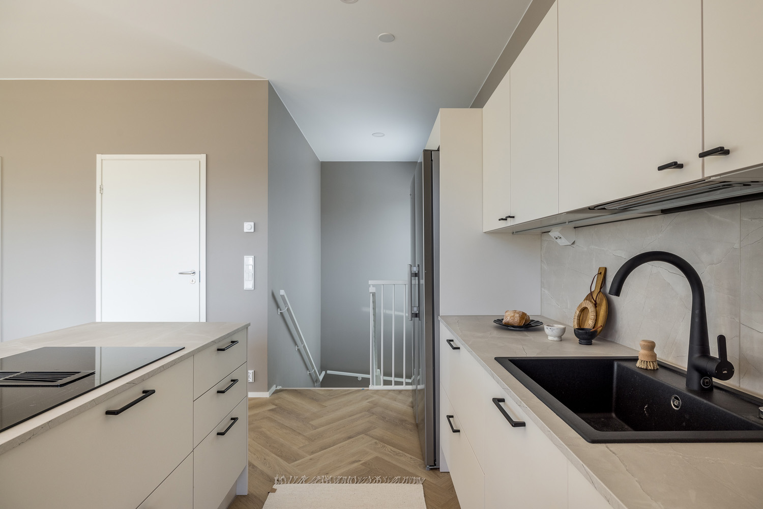 Merihaukan viimeinen vapaana oleva A-talo tarjoaa upean yhdistelmän valoa, avaruutta ja Nuottalahden rauhaa. Suuret ikkunat, korkeat huoneet ja harkitut materiaalivaihtoehdot tekevät kaksitasoisesta maalämpökodista ilmavan ja kutsuvan – kodin, jossa jokainen yksityiskohta on suunniteltu viihtymistä varten. Nuottalahden rauhassa arki kulkee sujuvasti, kun merenranta, Rantaraitin lenkkimaisemat ja Matinkylän urheilupuisto ovat lähellä. Iso Omena palvelee kattavasti, ja loistavat liikenneyhteydet tekevät liikkumisesta vaivatonta niin omalla autolla kuin julkisillakin. Espoon Merihaukan A-asunto tarjoaa valoisan ja ajattoman kodin lähellä merta.