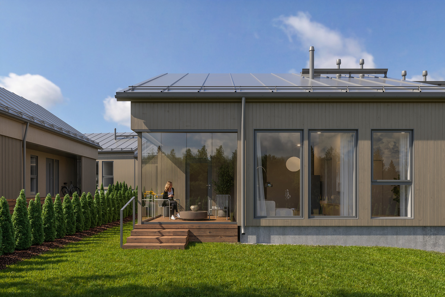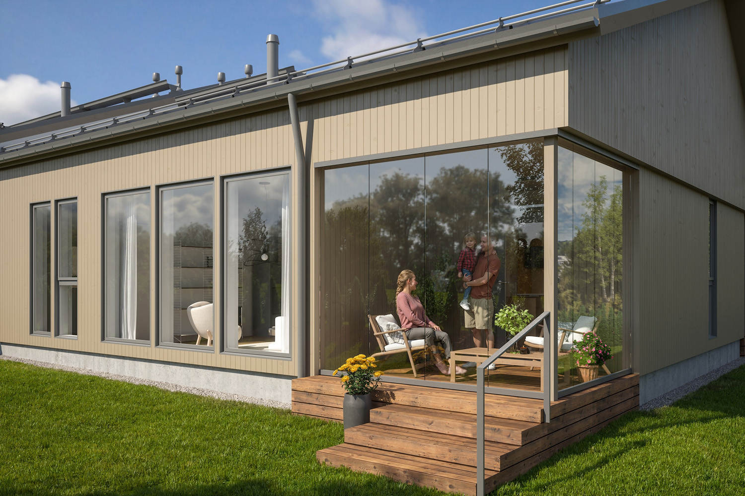 Katettu terassi ja oma piha laajentavat omaa asuintilaa