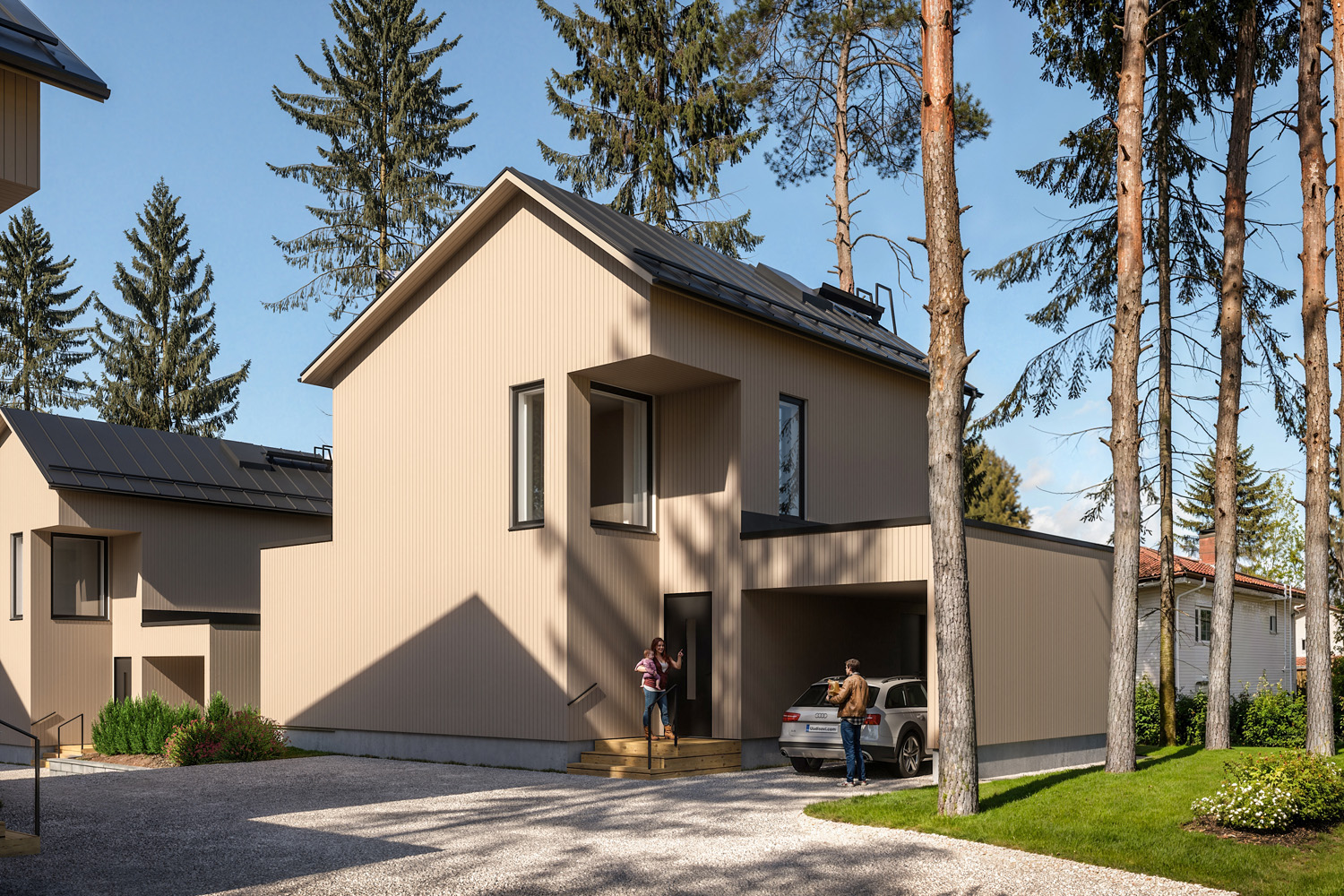 Espoon Valkojoutsen koostuu seitsemästä kaksitasoisesta erillistalosta. Myytävien asuntojen suunnittelussa on tehty kestäviä ja laadukkaita valintoja – kuten parkettilattiat, listattomat ikkunat ja Laattapisteen laatat. Lopputuloksena on valoisa koti, jossa on katettu terassi, autokatos, avara olohuone ja keittiötila, tilava varasto omalla sisäänkäynnillä, erillinen kodinhoitohuone, kätevä vaatehuone sekä käsin tehty, lasiseinäinen sauna. Arjen ylellisyyttä lisää se, että päämakuuhuoneesta on pääsy omaan vessaan ja vaatehuoneeseen. Puustellin keittiössä on saarekevaraus, joka mahdollistaa entistä runsaammat säilytys- ja laskutilat. Voit rakentaa asiantuntijoidemme kanssa väri-, pintamateriaali- ja kiintokalustevalikoimasta oman näköisesi kodin tiettyyn rakentamisen vaiheeseen saakka.